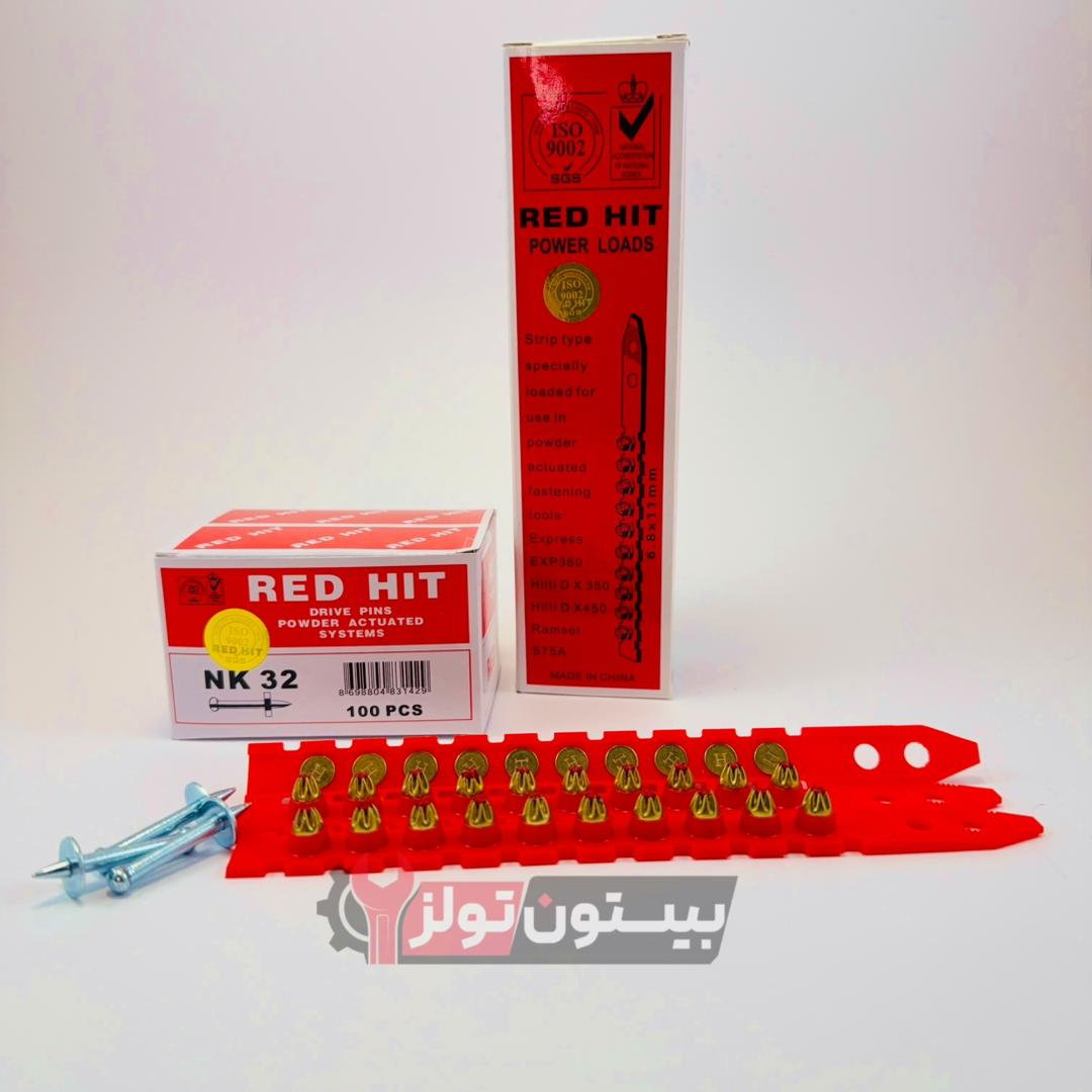 میخ و چاشنی ردهیت سایز 32 RED HIT: ایدهآل برای اتصالات قوی و سریع در بتن و فولاد. کیفیت بالا، نفوذ عالی و ایمنی تضمین شده. بیستون تولز: مرجع ابزارآلات ساختمانی